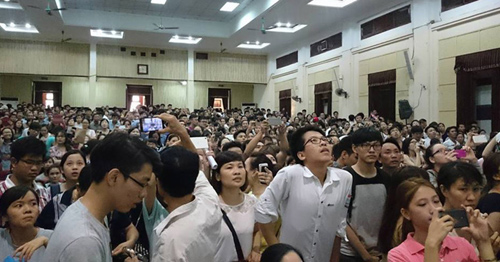 Thí sinh và phụ huynh căng thẳng trong kỳ xét tuyển ĐH tại Trường ĐH Kinh tế quốc dân năm 2015.