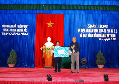 Thực hiện kế hoạch của Công đoàn Ngành Giáo dục tỉnh Quảng Nam, sáng ngày 06/03/2011, tại Trường PTDTNT tỉnh Quảng Nam, Công đoàn nhà trường đã đăng cai tổ chức buổi sinh hoạt kỷ niệm 101 năm ngày Quốc tế phụ nữ 8/3 và 1971 năm khởi nghĩa Hai Bà Trưng trong cụm Công đoàn các trường THPT, PTDTNT và Trung tâm GDTX – HN phía Bắc của tỉnh. Thông qua buổi sinh hoạt nhằm tuyên truyền về ý nghĩa ngày Quốc tế phụ nữ 8/3 và giá trị lịch sử của cuộc khởi nghĩa Hai Bà Trưng đối với dân tộc Việt Nam; nâng cao ý thức trách nhiệm của các tổ chức, đoàn thể đối với sự tiến bộ của phụ nữ; đồng thời tạo điều kiện cho nữ công trong Cụm có dịp gặp gỡ, giao lưu, trao đổi kinh nghiệm lẫn nhau; nâng cao đời sống tinh thần cho nữ CBVC.