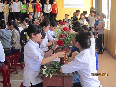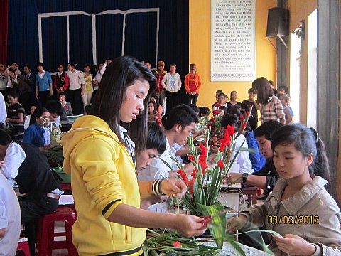 Từ 14 giờ, tại Nhà Đa năng, diễn ra hội thi cắm hoa (dành cho nữ sinh) và làm thiệp theo chủ đề ngày 8/3 (dành cho nam sinh). Sau thời gian gần hai tiếng đồng hồ trong không khí rộn rịp, sôi động, các chi đoàn đã mang đến cho BTC, BGK cuộc thi những sản phẩm bất ngờ, thú vị.