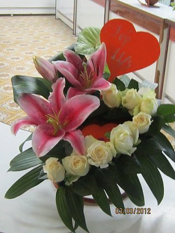 Các giỏ hoa với những ý tưởng, kiểu cắm khác nhau nhưng tất cả đều là tình cảm của các em học sinh kính tặng các bà, các mẹ, các cô yêu quý. Tình mẹ của Chi đoàn 10/5 rất đẹp mắt và đầy ý nghĩa Con người là hoa của đất, phụ nữ là hương hoa của cuộc đời đã thuyết phục được Ban giám khảo và giành giải Nhất. Không kém phần độc đáo, Dòng sữa mẹ của Chi đoàn 11/2 giành giải Nhì được thiết kế với ý tưởng sáng tạo giọt sữa được kết từ những bông hoa màu trắng và ôm lấy quả địa cầu tượng trưng cho tấm lòng của người mẹ dù bất cứ nơi đâu, bất cứ dân tộc nào thì tình yêu của người mẹ dành cho con luôn thiêng liêng, cao cả, không bao giờ vơi cạn; đồng thời còn thể hiện ước mơ của người mẹ mong cho con được bay cao, bay xa và luôn rộng cánh tay chào đón con trở về với mẹ. Nhẹ nhàng với hai sắc hoa đỏ, trắng trên hình trái tim được gắn thêm hai ngọn nến lung linh, huyền diệu, Ấm áp trái tim mẹ của Chi đoàn 10/1 cũng là món quà vô giá mà các em kính gửi đến những người mẹ thân yêu của mình.