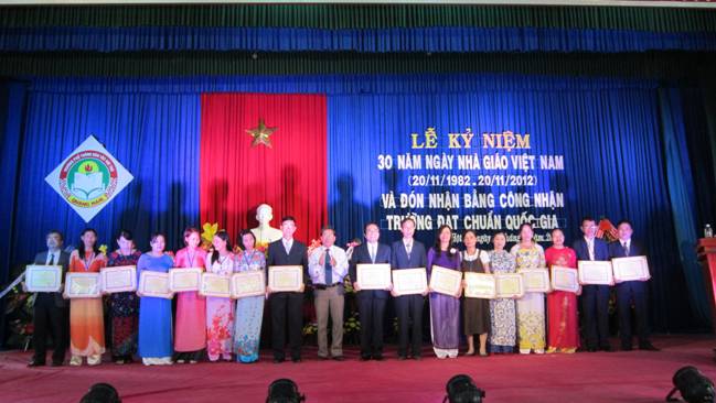 Cũng tại buổi lễ, nhà trường đã tổ chức trao tặng Bằng khen, Giấy khen của các cấp cho các cá nhân CBVC có thành tích xuất sắc trong năm học 2011-2012; tuyên dương, khen thưởng những tập thể, cá nhân học sinh đã có nhiều thành tích trong chặng thi đua chào mừng Ngày Nhà Giáo Việt Nam 20-11 năm nay.