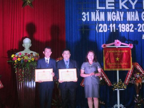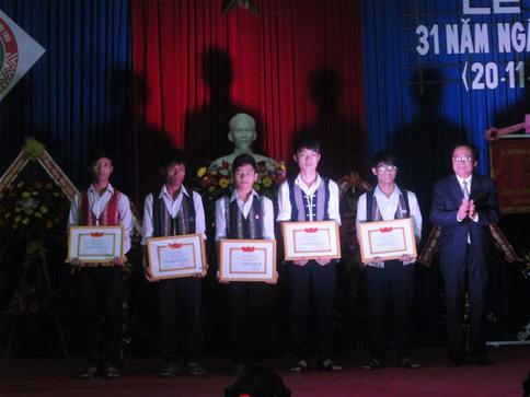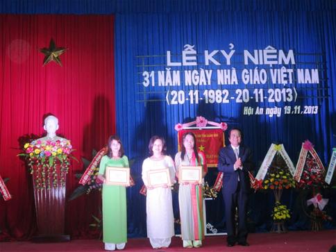 Đến dự và phát biểu tại buổi lễ, Ông Nguyễn Minh Hoàng - Phó Giám đốc Sở GD&ĐT tỉnh Quảng Nam đã ghi nhận và đánh giá cao những kết quả mà thầy và trò nhà trường đã đạt được trong những năm qua; động viên thầy và trò nhà trường tiếp tục phấn đấu, nâng cao hơn nữa chất lượng giáo dục, xứng đáng với danh hiệu trường THPT đầu tiên của tỉnh đạt Chuẩn Quốc gia. Tại buổi lễ, thừa ủy nhiệm của UBND tỉnh Quảng Nam, Phó Giám đốc Sở GD&ĐT đã trao tặng Cờ thi đua xuất sắc UBND tỉnh năm học 2012 - 2013 cho nhà trường. Các CBVC có thành tích xuất sắc trong năm học 2012 - 2013 cũng được tặng thưởng Bằng khen của Bộ GD&ĐT, của UBND Tỉnh, Giấy khen của Giám đốc Sở GD&ĐT và danh hiệu thi đua các cấp. Nhân dịp này, nhà trường đã tuyên dương, khen thưởng những tập thể học sinh có nhiều thành tích trong đợt thi đua chào mừng ngày Nhà giáo Việt Nam 20/11.
