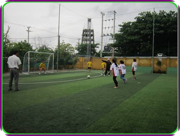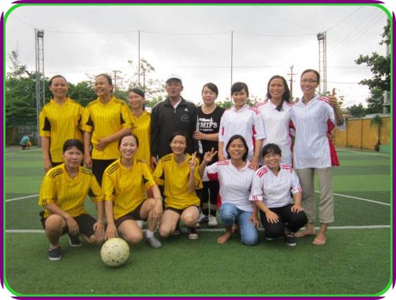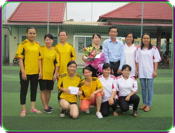 Phần sinh hoạt được chị em chờ đợi nhất là trận bóng đá mini giao hữu giữa hai đội Giáo viên và Hành chính - nuôi dưỡng. Mặc dù trời mưa nhưng trận đấu vẫn diễn ra vô cùng hấp dẫn, nhiều pha bóng đẹp mắt với tinh thần thể thao vui khỏe. Những điệu cười giòn giã, những tràng pháo tay không ngớt vang lên xen lẫn sự tiếc nuối bởi nhiều cơ hội làm bàn bị bỏ lỡ. Sau gần một giờ đồng hồ tranh tài sôi nổi, hào hứng, đội Giáo viên đã giành chiến thắng với tỉ số 4-0. Quà tặng của các anh cho cả đội thắng và đội thua là những bông hoa tươi thắm và những cái bắt tay nồng ấm tình đồng nghiệp.