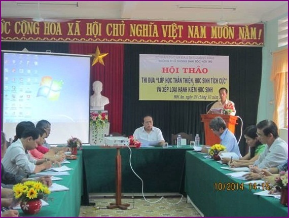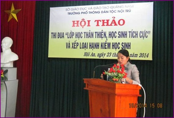 Chiều ngày 23/10/2014, Trường PTDTNT tỉnh Quảng Nam tổ chức Hội thảo Thi đua “Lớp học thân thiện, học sinh tích cực” và đánh giá xếp loại hạnh kiểm học sinh. Hội thảo lần này nhằm đánh giá tổng kết tình hình thực hiện phong trào thi đua xây dựng “Lớp học thân thiện, học sinh tích cực” và đánh giá, xếp loại hạnh kiểm học sinh trong thời gian qua; đồng thời góp ý sửa đổi, bổ sung các quy định về chấm điểm thi đua cũng như đánh giá xếp loại hạnh kiểm phù hợp với đối tượng học sinh của nhà trường.