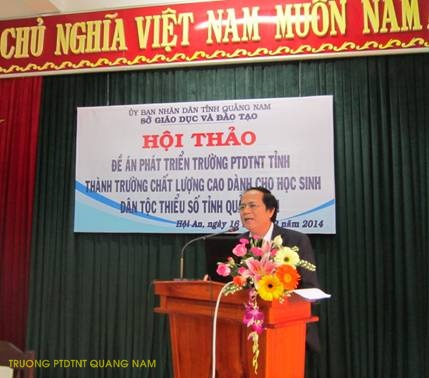 Vừa qua, ngày 16/12/2014, tại Trường PTDTNT tỉnh, Sở Giáo dục và Đào tạo tỉnh Quảng Nam đã tổ chức Hội thảo "Đề án phát triển Trường PTTNT tỉnh thành trường chất lượng cao dành cho học sinh dân tộc thiểu số tỉnh Quảng Nam”.