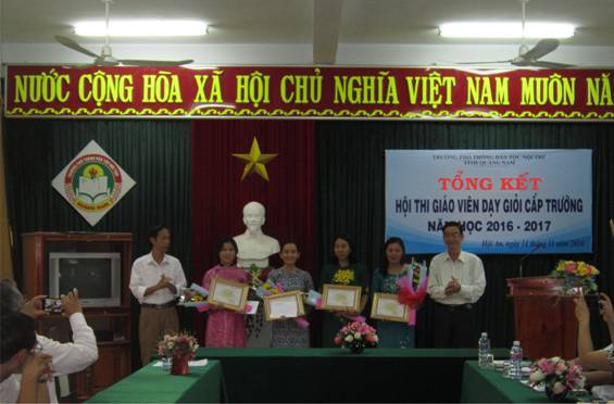 Chiều ngày 14/11/2016, Trường PTDTNT tỉnh Quảng Nam đã tổ chức tổng kết Hội thi “Giáo viên dạy giỏi cấp trường” (GVDG), năm học 2016-2017, Hội thi GVDG cấp trường năm nay, được tổ chức từ ngày 31/10/2016 và kết thúc vào ngày 11/11/2016, tham gia Hội thi lần này có 05 cô giáo dự thi ở các bộ môn Toán, Tiếng Anh, Sinh Học và Hóa học.