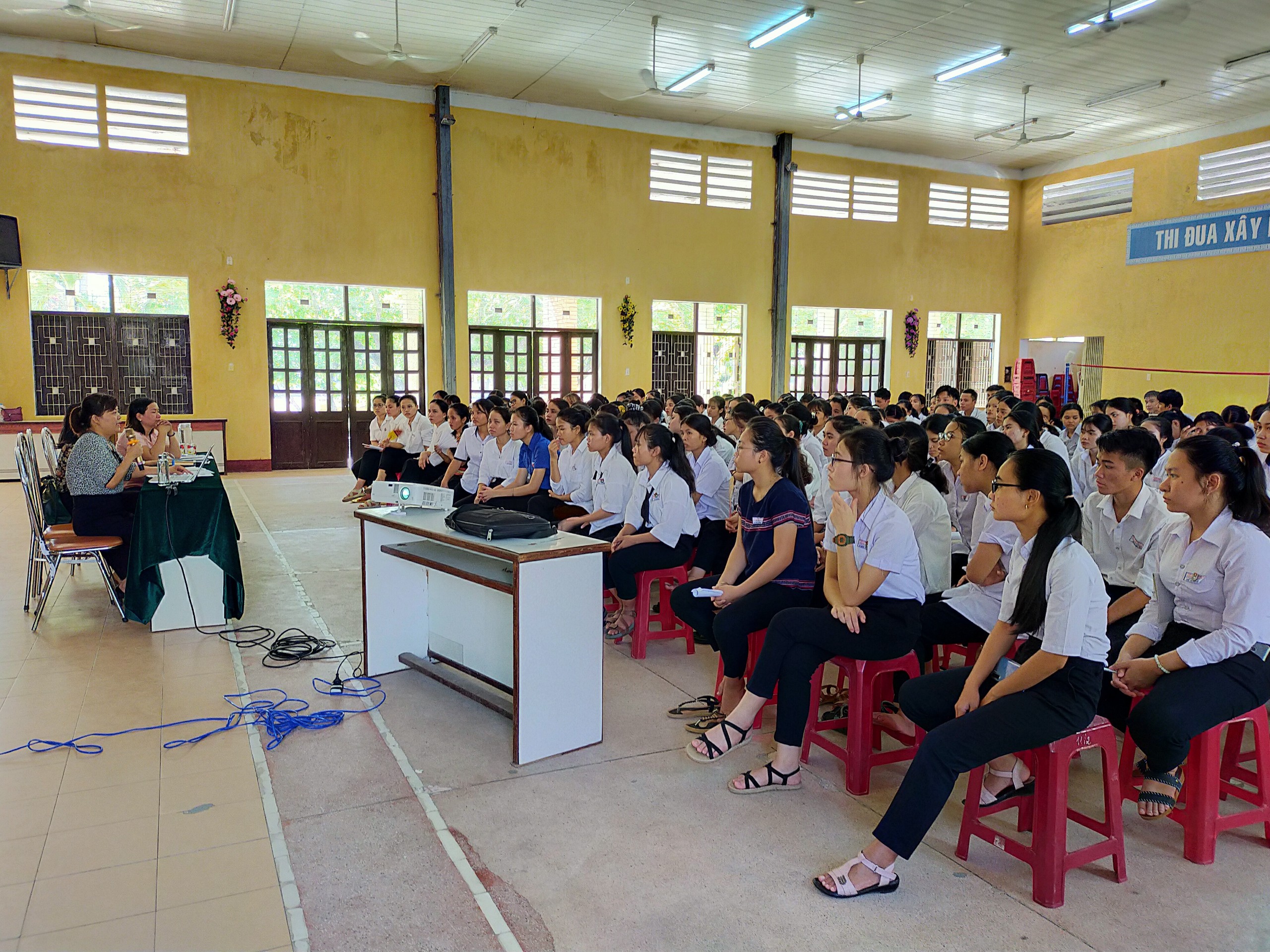 Chương trình Tư vấn, hướng nghiệp cho học sinh Trung học phổ thông là hoạt động thường xuyên của tổ chức Đoàn và ngành giáo dục nhằm góp phần định hướng giúp học sinh chủ động, sáng suốt trong việc lựa chọn nghề nghiệp, việc làm. Đồng thời, thực hiện chiến lược phát triển nguồn nhân lực đáp ứng yêu cầu công nghiệp hóa, hiện đại hóa đất nước và hội nhập quốc tế. Nhận thức được tầm quan trọng của việc định hướng nghề nghiệp cho các em học sinh, ngày 11/6/2020, Trường Phổ thông Dân tộc Nội trú tỉnh Quảng Nam tổ chức tư vấn hướng nghiệp cho học sinh khối 12 tại nhà Đa năng của trường.