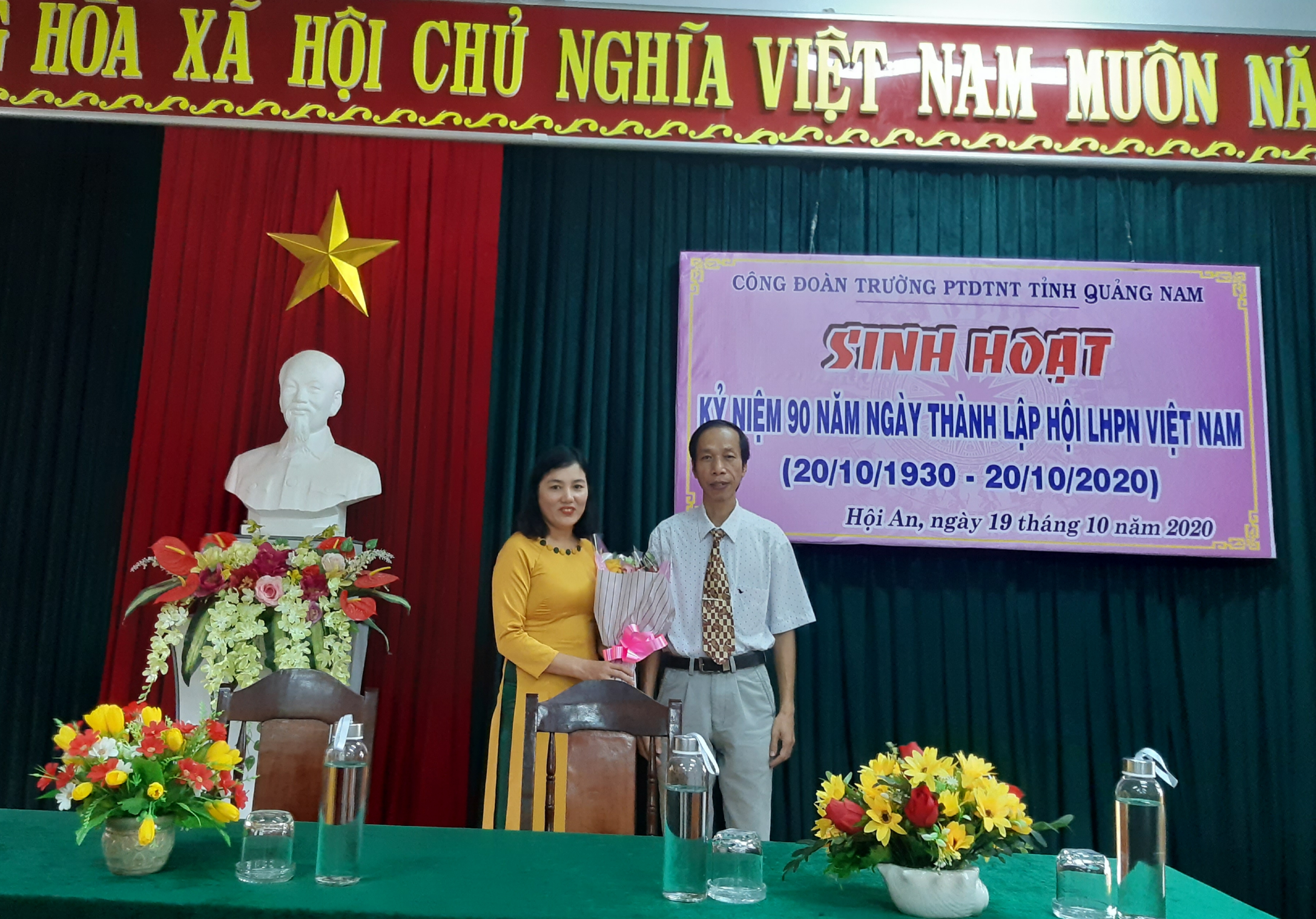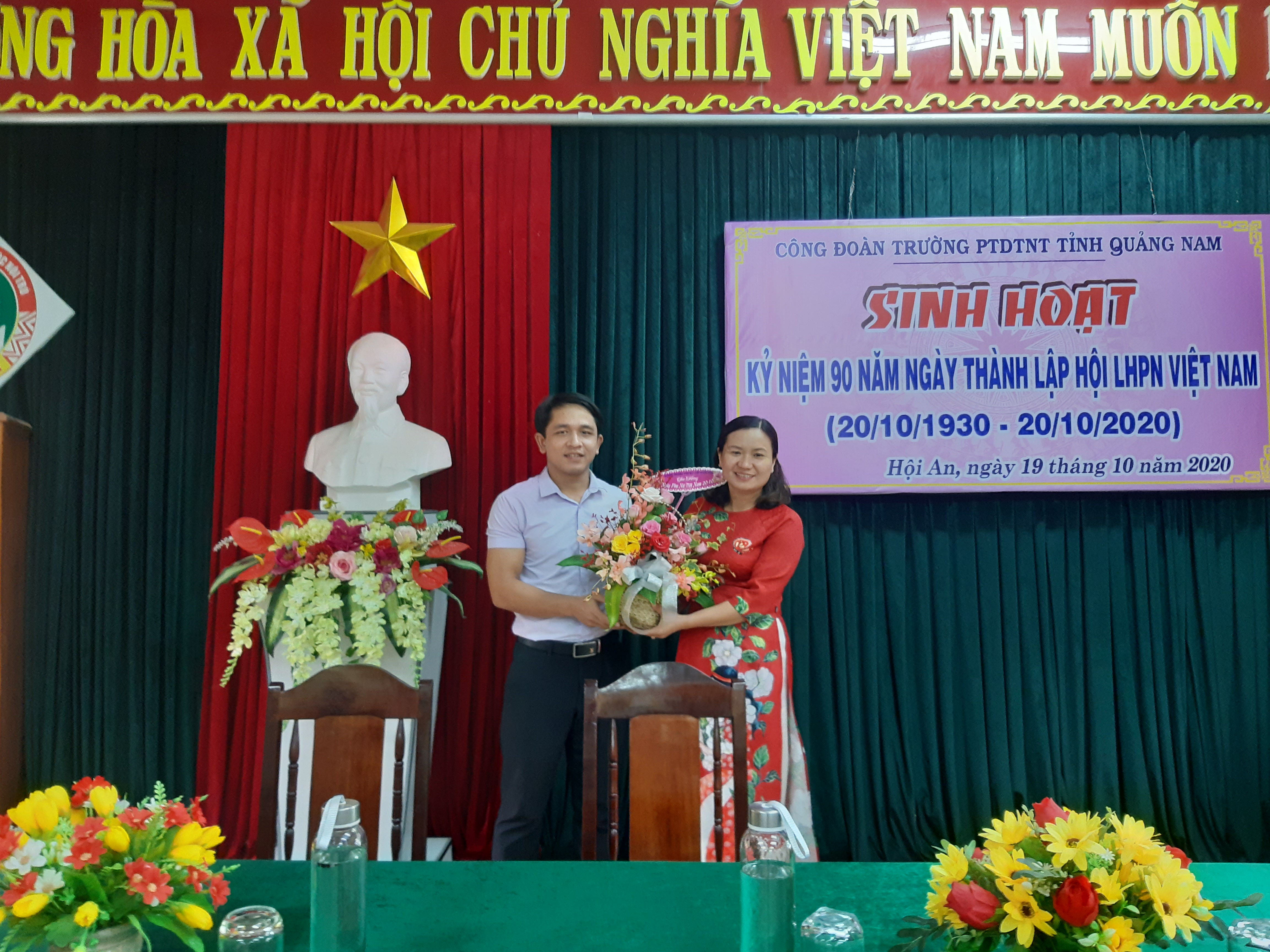 Nhân dịp kỷ niệm 90 năm Ngày thành lập Hội Liên hiệp phụ nữ Việt Nam (20/10/1930-20/10/2020), được sự nhất trí của Đảng ủy và Ban giám hiệu trường Phổ thông Dân tộc Nội trú tỉnh Quảng Nam, vào chiều ngày 19/10/2020 Công đoàn trường đã phối hợp với nữ công tổ chức buổi sinh hoạt chúc mừng các nữ CBVC của trường.