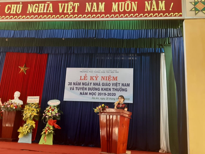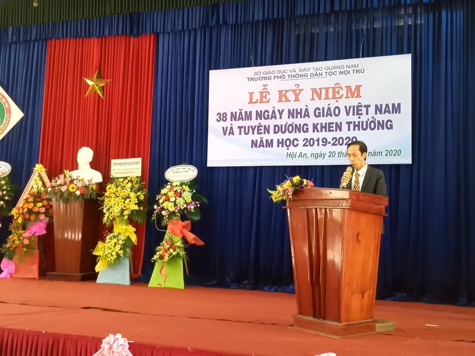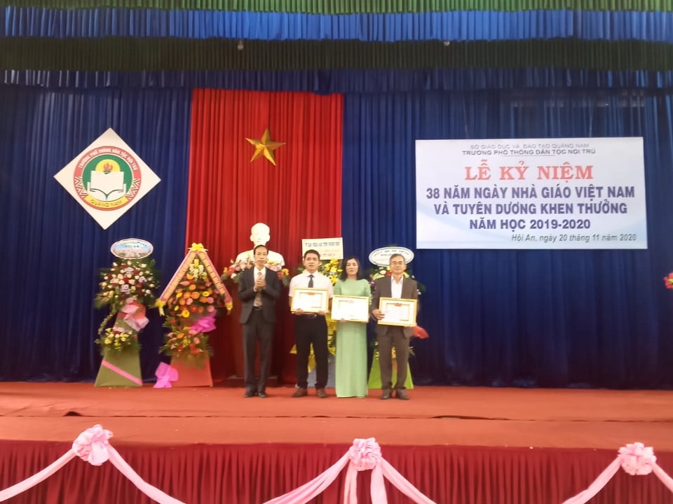 Hòa trong không khí vui tươi, phấn khởi của cả nước hướng về ngày hội của các thầy cô giáo, sáng ngày 20 tháng 11 năm 2020, thầy và trò Trường Phổ thông Dân tộc nội trú tỉnh Quảng Nam đã long trọng tổ chức Lễ kỷ niệm ngày Nhà giáo Việt Nam 20/11, nhằm phát huy truyền thống “Tôn sư trọng đạo” của dân tộc; đồng thời biểu dương, khen thưởng các tập thể, cá nhân CBVC và học sinh đạt thành tích xuất sắc trong phong trào thi đua “Lớp học thân thiện, học sinh tích cực”.