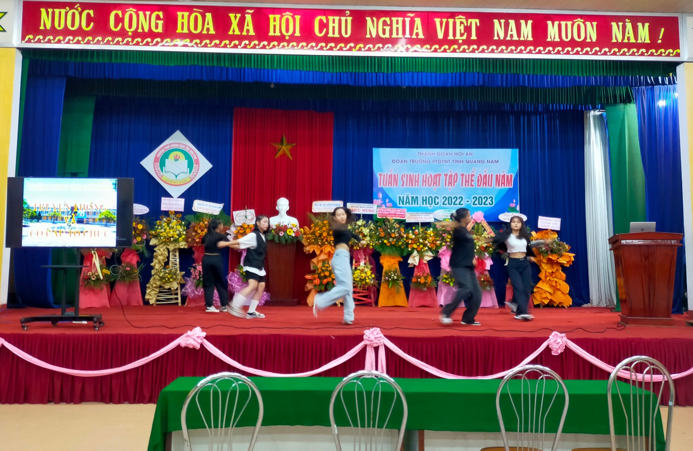 Nằm trong kế hoạch “Tuần sinh hoạt tập thể” đầu năm học 2022-2023. Vào lúc 19h00 ngày 08/9/2022 tại nhà Đa năng, trường PTDTNT tỉnh đã tổ chức hoạt động: giao lưu học sinh các khối lớp; thi tìm hiểu về cơ cấu tổ chức, truyền thống nhà trường.