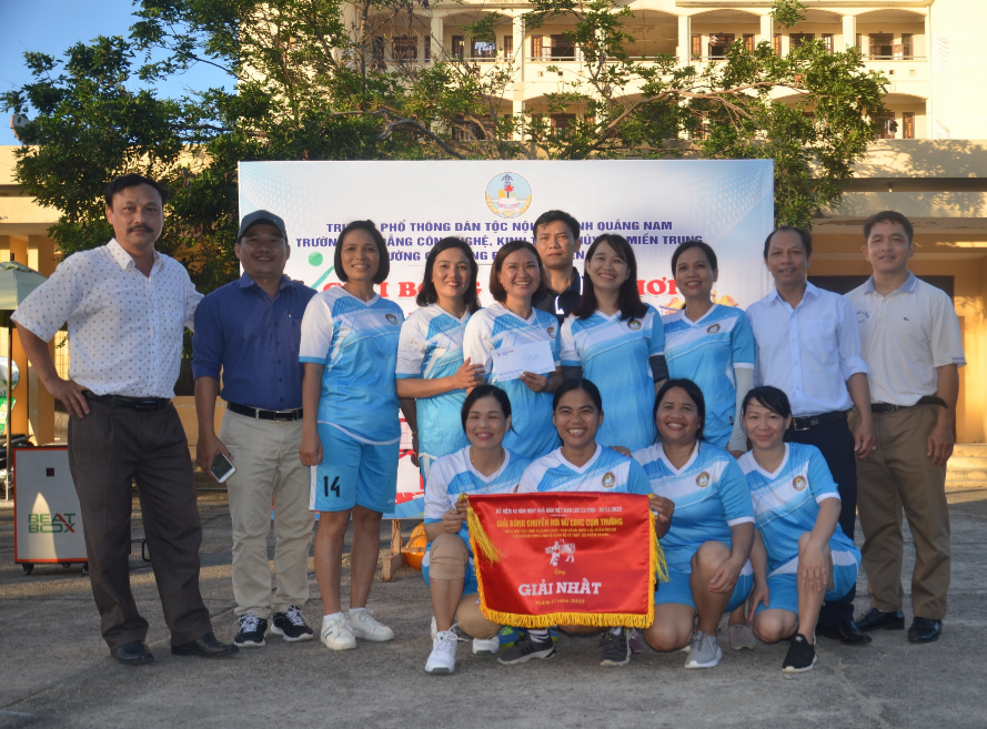Nằm trong kế hoạch hoạt động chào mừng kỷ niệm 40 năm ngày Nhà giáo Việt Nam. Chiều ngày 07/11/2022, Cụm ba trường (gồm Trường PTDTNT tỉnh Quảng Nam; Trường Cao đẳng điện lực miền Trung và CBVC Trường Cao đẳng kinh tế và thủy lợi miền Trung) đã tổ chức “giải bóng chuyền hơi dành cho nữ CBVC thuộc cụm ba trường năm 2022”. Giải đấu thực sự là một sân chơi bổ ích dành cho đội ngũ nữ CBVC thuộc cụm ba trường; qua đó, hướng đến hoạt động lớn của Ngành Giáo dục là kỷ niệm 40 năm ngày Nhà giáo Việt Nam. Trải qua các trận đấu sôi nổi, kịch tính với tinh thần thể thao cao thượng kết quả chung cuộc như sau: