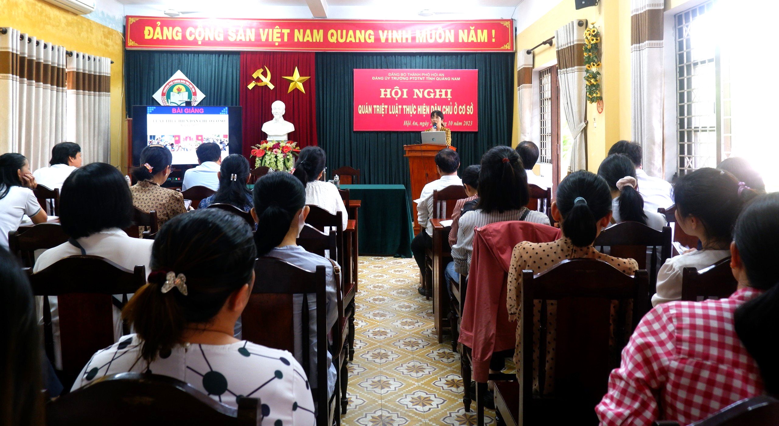 Thực hiện Kế hoạch của UBND tỉnh Quảng Nam và Kế hoạch của Ban chỉ đạo thực hiện quy chế dân chủ ở cơ sở thành phố Hội An, chiều ngày 25/10/2023, Đảng bộ trường Phổ thông Dân tộc nội trú tỉnh Quảng Nam đã tổ chức Hội nghị quán triệt và triển khai thực hiện Luật thực hiện dân chủ ở cơ sở.